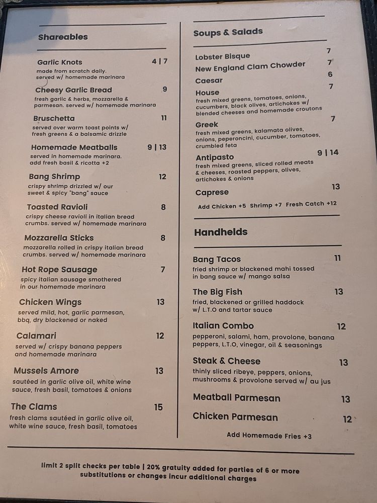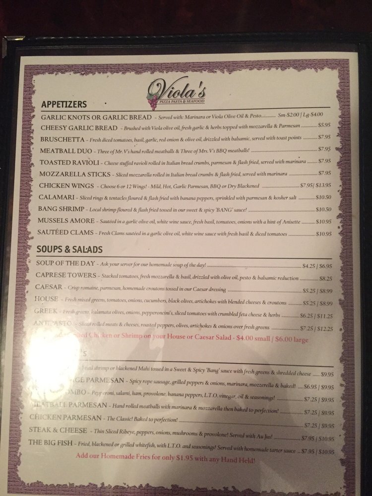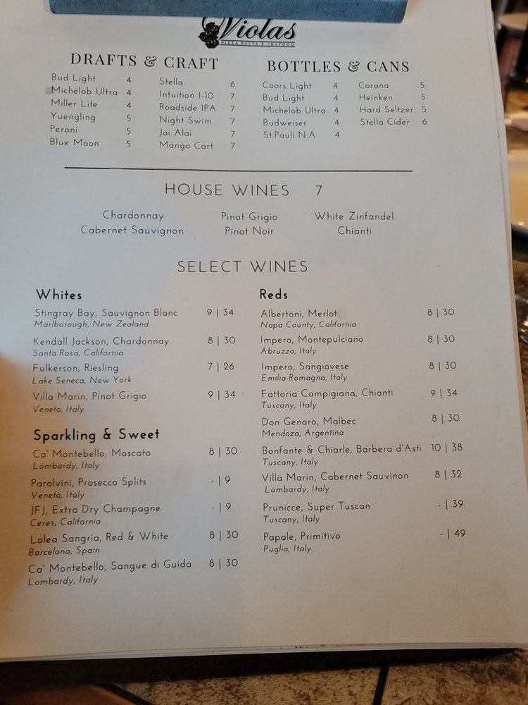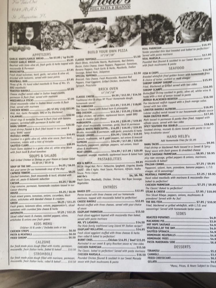 Violas, a seafood and Italian restaurant located in St. Augustine, FL, offers a plethora of delightful options. From appetizers like bang shrimp and garlic knots to soups like lobster bisque and salads like caprese towers, Violas caters to a variety of tastes. Handheld options include the Big Fish and Italian Combo, satisfying every craving. Customers rave about the garlic knots, chicken parmesan, and pizzas. The intimate atmosphere and impeccable service make Violas a top choice for Italian cuisine. Reservations are a must due to high demand, but takeaway options are available for those craving their delicious dishes at home. Whether you're a local or a tourist, Violas is a must-visit destination for a memorable dining experience.